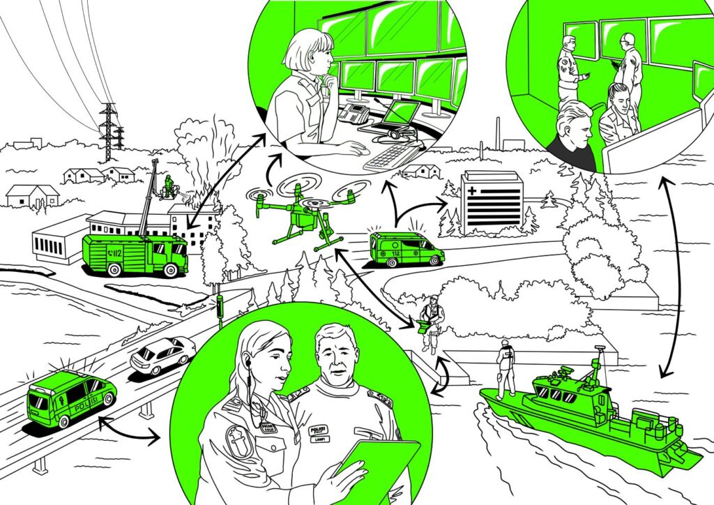 - Poliisi, pelastustoimi, sosiaali- ja terveystoimi, Puolustusvoimat ja Rajavartiolaitos